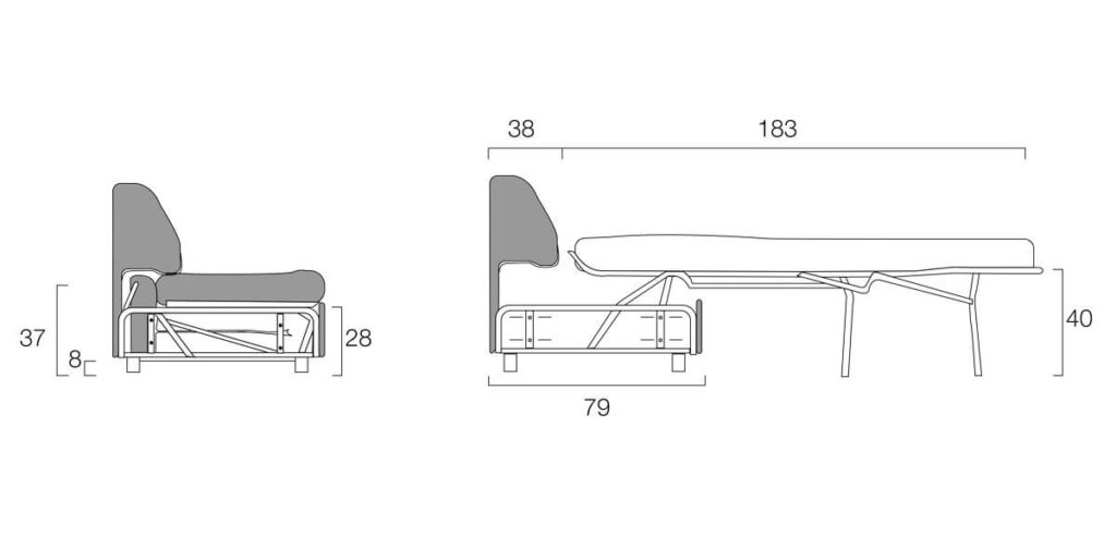 Duepieghe Italia Electric strap INSERTION MECHANISM, H12 MATTRESS An insertion mechanism with two-fold opening. Ultra-strong frame in furniture tubing painted with epoxy powders. Sleeping surface with base in fuse-bonded steel with elastic straps. SIDE VIEWS TOP VIEW AND SIZE CHART SIDE VIEWS TOP VIEW AND SIZE CHART AVAILABLE MATTRESSES FOR DUEPIEGHE ITALIA Slalom stretch Due Pieghe D25 stretch Tre pieghe D21 cotton Due Pieghe XL D25 stretch Condividi Share on FacebookShare on Facebook TweetShare on Twitter Share on LinkedInShare on LinkedIn