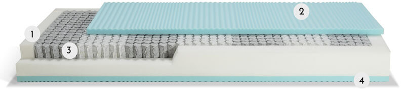 The upper profile in massaging Hidrocell stimulates the muscular and skeletal system and thus promotes blood circulation. The body is welcomed and supported exactly where it is needed thanks to the Independent Microsprings in 7 different zones that accompany night-time movement in a balanced way.