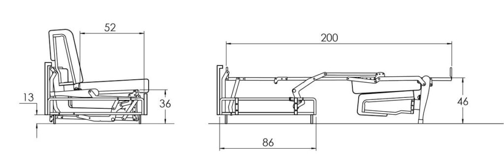 This clever revolving mechanism with a simple and unique opening system converts into a bed. Seat and back cushions are fixed to the frame during the opening action. The Smart Piede13 has been designed for the manufacturing of more comfortable and modern upholstered sofa beds sofas with 13 cm high legs.