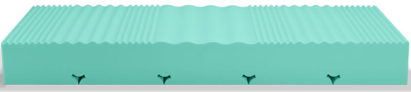 Mattress composed of a latest generation Hidrocell foam slab, characterized by billions of tiny air-filled alveoli which make it well breathable and resistant to heat and humidity, and therefore long-lasting. The 7 transversal zone shaping increases the comfort of the mattress. The medium-high density of its structure ensures good support for the stretched body.